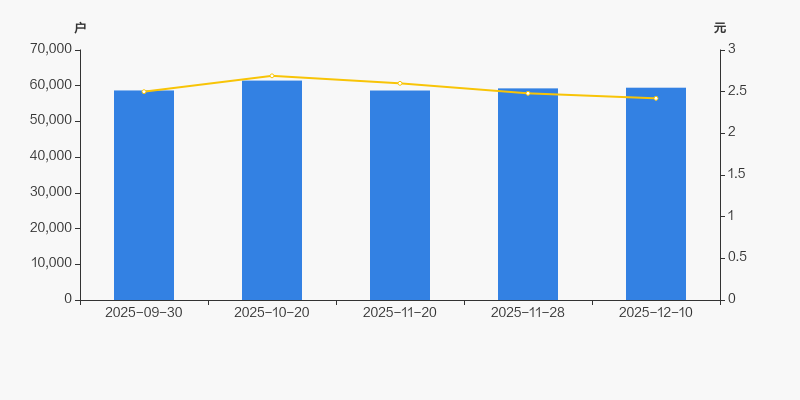 2025年9月30日至今,公司股东户数有所增长,区间涨幅为1.31%。2025年9月30日至2025年12月10日区间股价下降3.20%。