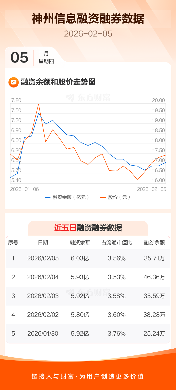 交易所最新数据显示,神州信息于2026年2月5日获融资买入4483.05万元,融资偿还3549.33万元,当日融资净买入933.73万元。目前,该股融资余额6.03亿,占流通市值比例为3.56%。