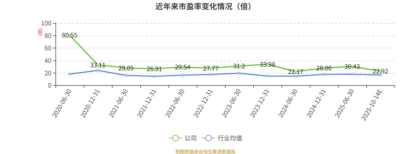 以本次披露业绩预告均值计算,公司近年市盈率(TTM)图如下所示: