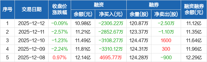 万向钱潮:连续4日融资净偿还累计1.16亿元(12-12)