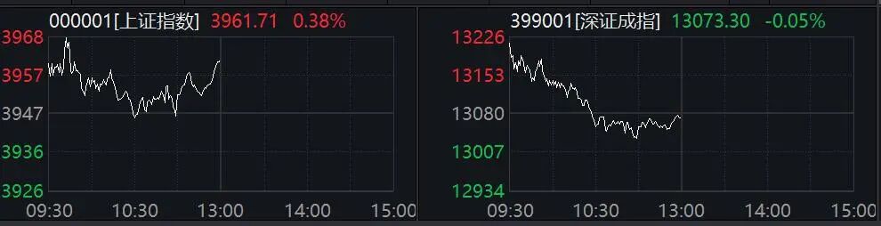 11月20日早盘,A股三大指数高开低走,截至午间收盘,沪指涨0.38%,深证成指跌0.05%,创业板指跌0.52%。