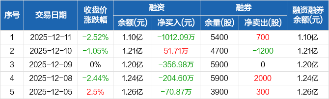渝三峡A:融资净偿还1012.09万元,融资余额1.1亿元(12-11)