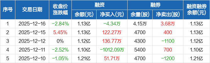 渝三峡A:融资净偿还4.34万元,融资余额1.13亿元(12-16)