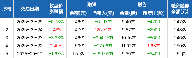 海德股份:融资净偿还61.13万元,融资余额1.46亿元(09-25)