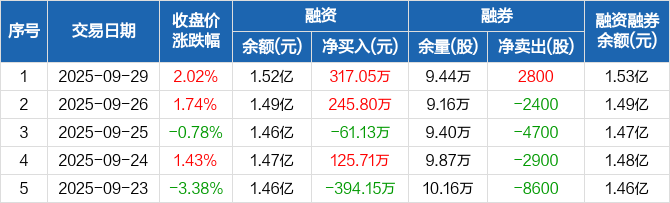 海德股份:融资净买入317.05万元,融资余额1.52亿元(09-29)