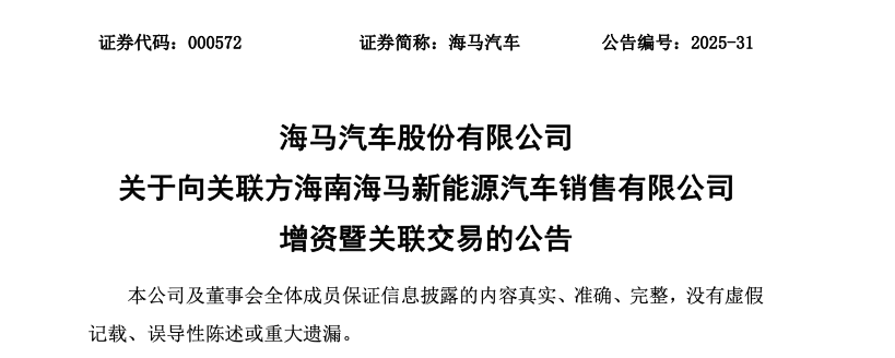 9月26日晚间,海马汽车(000572)发布公告,公司与海南控股、海南新能源销售于2025年9月26日在海口市签订《增资协议》,决定对海南新能源汽车销售公司增资41万元,增资后公司对海南新能源销售的持股比例将从50%增至51%。