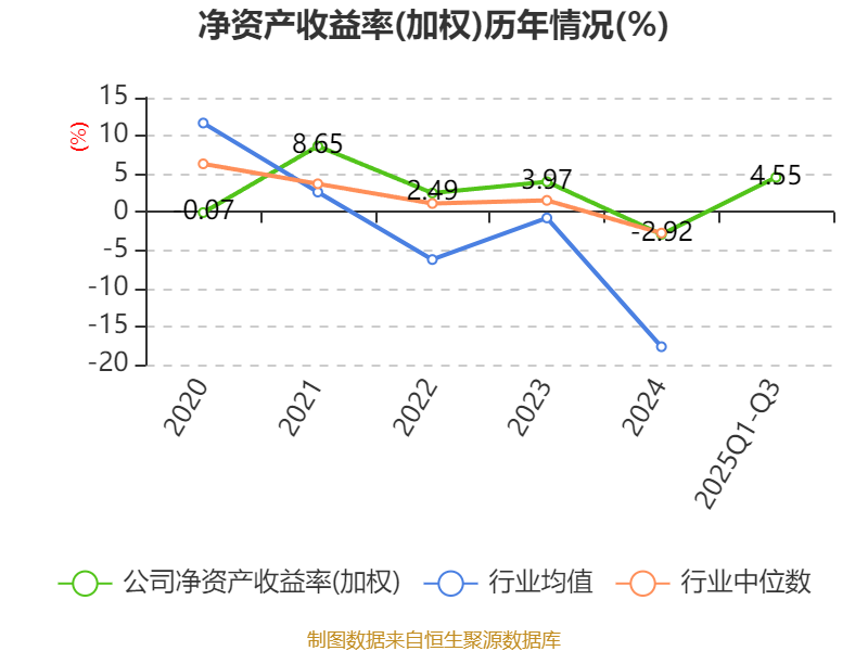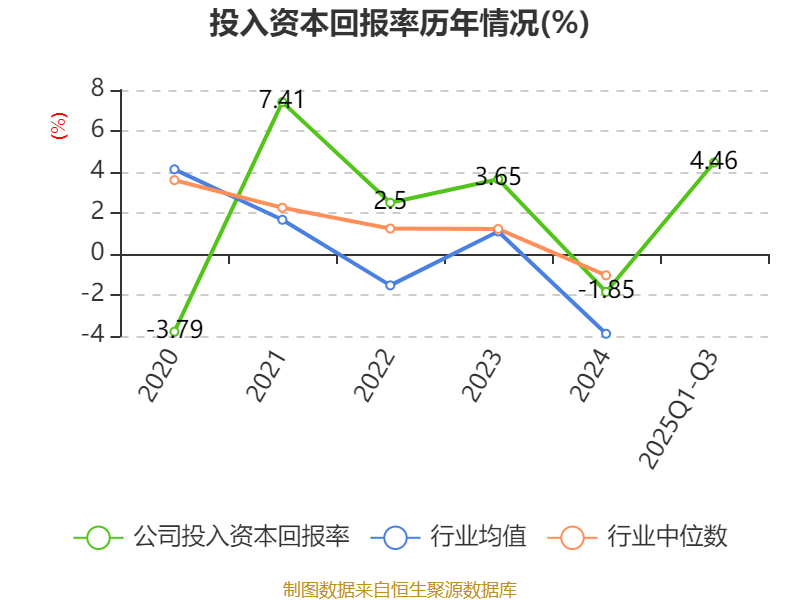 盈利能力方面, 2025年前三季度公司加权平均净资产收益率为4.55%,同比上升6.9个百分点。公司2025年前三季度投入资本回报率为4.46%,较上年同期上升6.05个百分点。