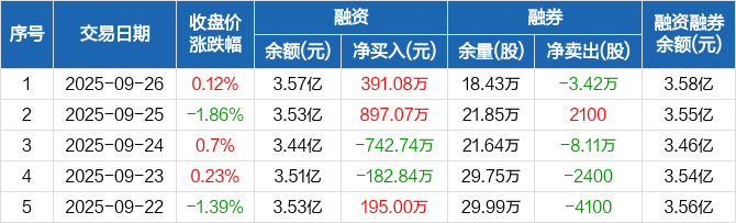北部湾港:融资净买入391.08万元,融资余额3.57亿元(09-26)