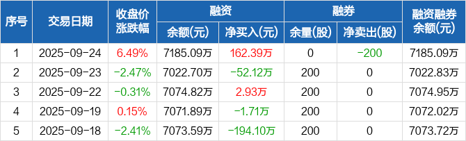 德龙汇能:融资净买入162.39万元,融资余额7185.09万元(09-24)