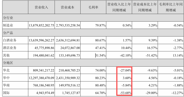 三季度公司虽未披露相关数据,但从其52%的营收降幅看,古井贡上述三大市场或无一幸免。其中,最疲软或仍属华北市场。