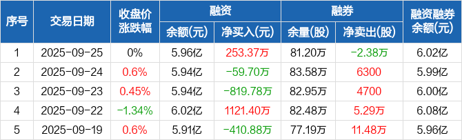 兴蓉环境:融资净买入253.37万元,融资余额5.96亿元(09-25)