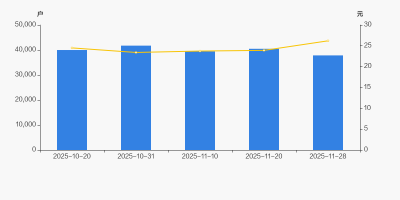 2025年10月20日至今,公司股东户数有所下降,区间跌幅为5.38%。2025年10月20日至2025年11月28日区间股价上涨6.94%。