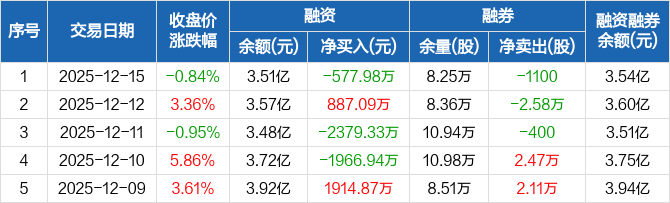 盛达资源:融资净偿还577.98万元,融资余额3.51亿元(12-15)