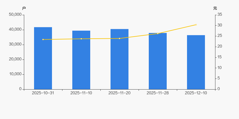 2025年10月31日至今,公司股东户数显著下降,区间跌幅为12.87%。2025年10月31日至2025年12月10日区间股价上涨29.73%。