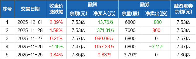 焦作万方:融资净偿还13.76万元,融资余额7.53亿元(12-01)