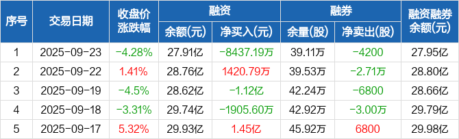 中油资本:融资净偿还8437.19万元,融资余额27.91亿元(09-23)