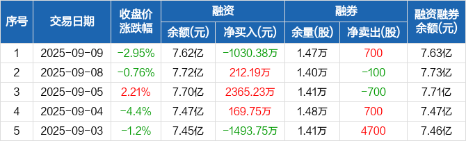 高新发展:融资净偿还1030.38万元,融资余额7.62亿元(09-09)
