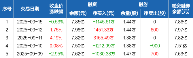 高新发展:融资净偿还1145.61万元,融资余额7.85亿元(09-15)