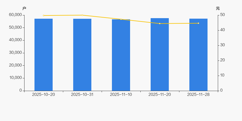 2025年10月20日至今,公司股东户数有所增长,区间涨幅为0.07%。2025年10月20日至2025年11月28日区间股价下降10.29%。
