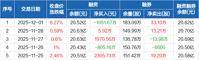 铜陵有色:融资净偿还1051.67万元,融资余额20.52亿元(12-01)