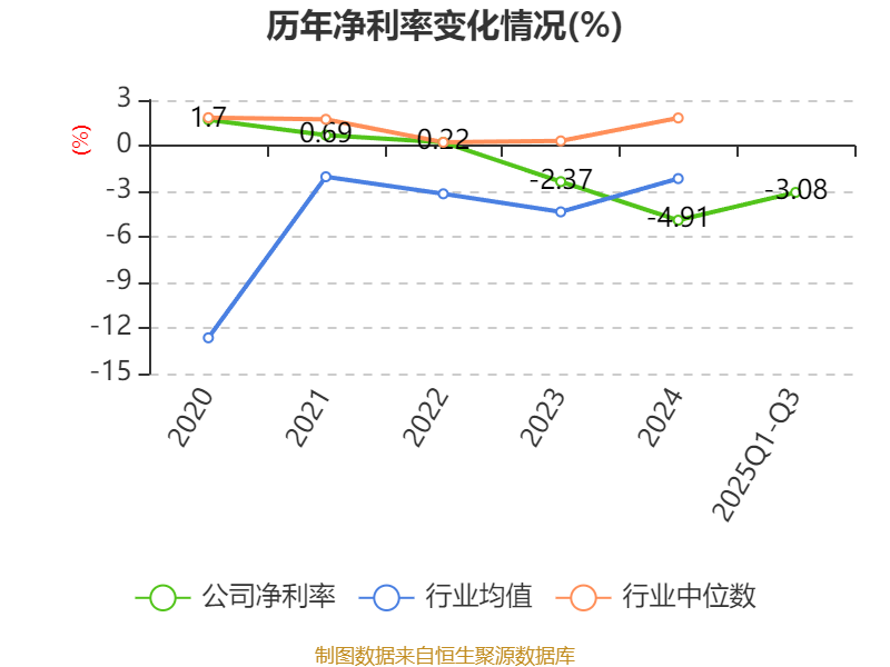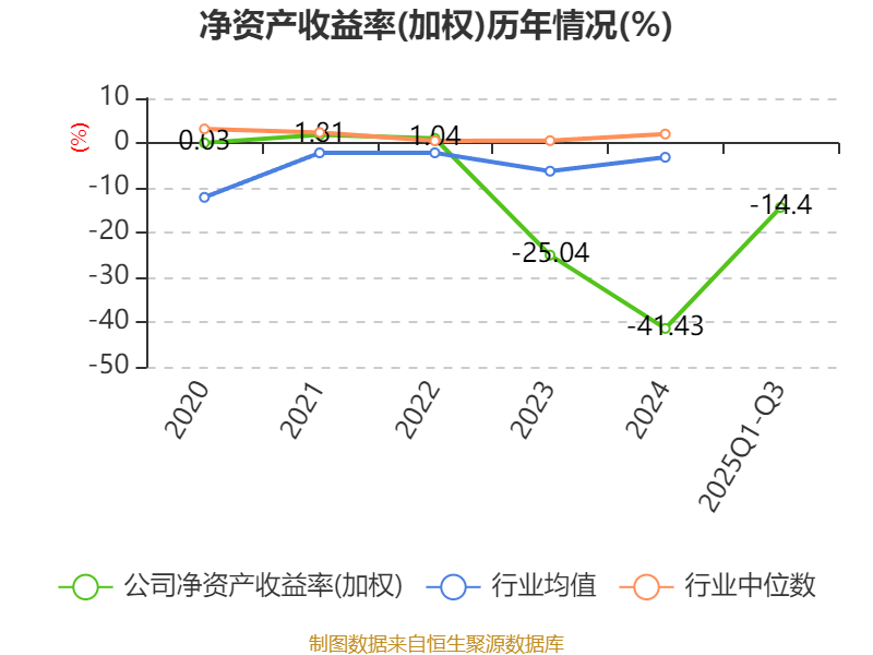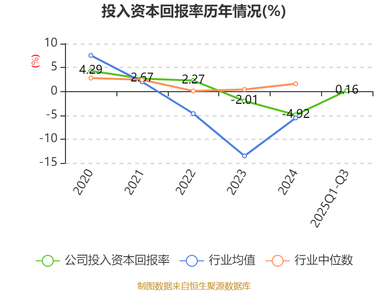 盈利能力方面, 2025年前三季度公司加权平均净资产收益率为-14.4%,同比下降8.33个百分点。公司2025年前三季度投入资本回报率为0.16%,较上年同期下降1.4个百分点。