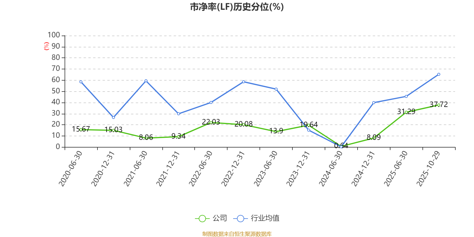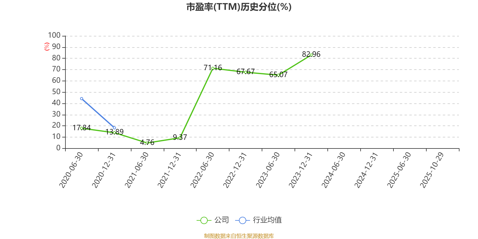 市盈率、市净率为负时,不显示当期分位数,会导致折线图中断。