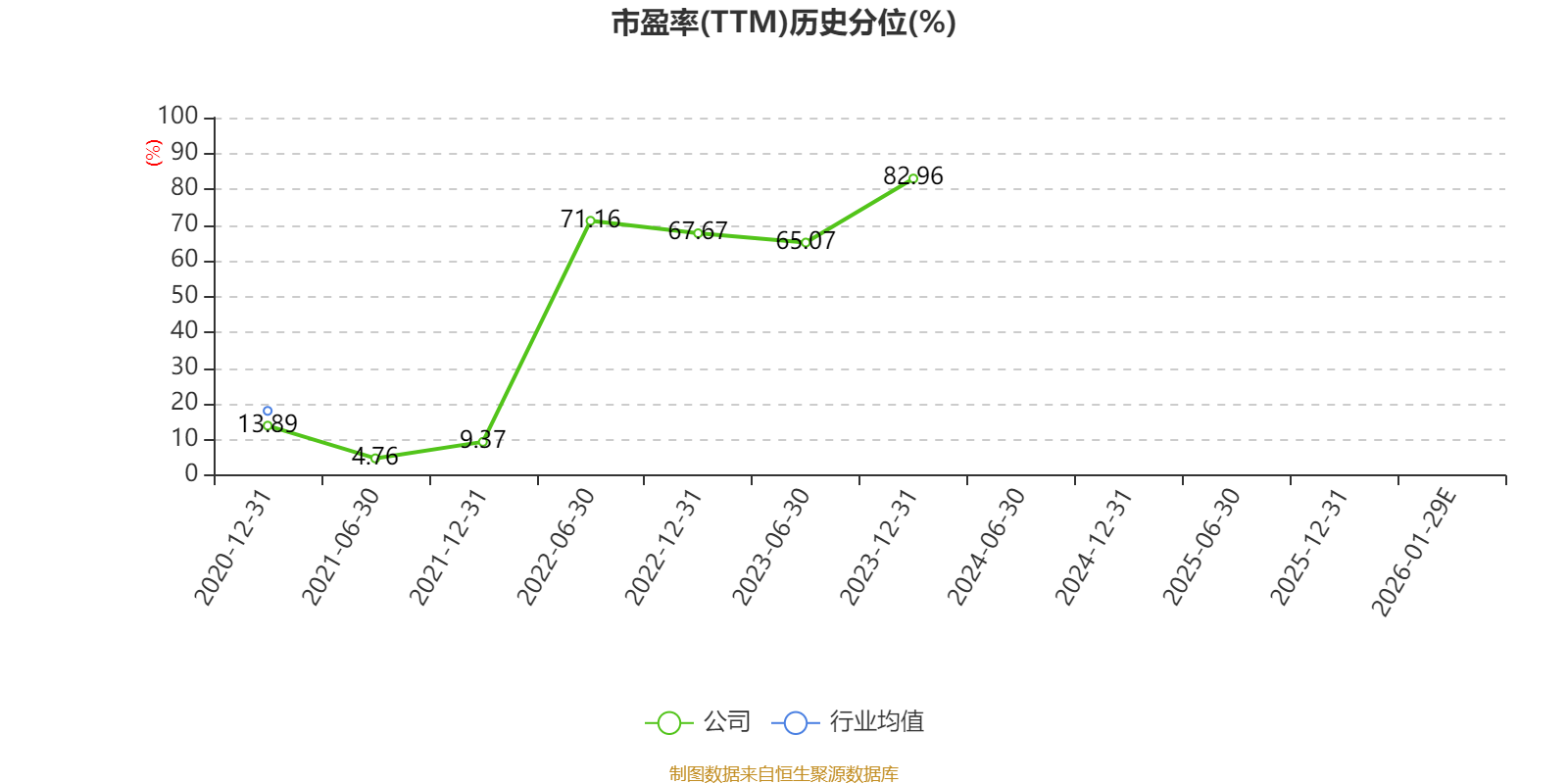 以本次披露业绩预告均值计算,公司近年市盈率(TTM)图如下所示: