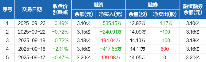 泰达股份:融资净偿还535.15万元,融资余额3.1亿元(09-23)