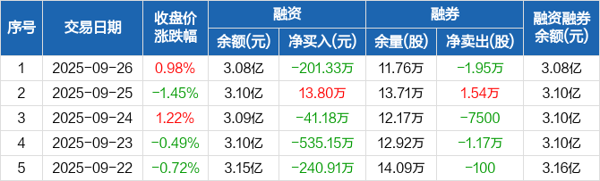 泰达股份:融资净偿还201.33万元,融资余额3.08亿元(09-26)