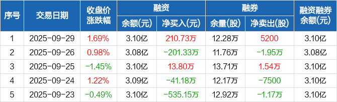 泰达股份:融资净买入210.73万元,融资余额3.1亿元(09-29)