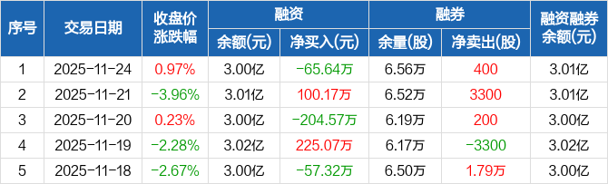泰达股份:融资净偿还65.64万元,融资余额3亿元(11-24)