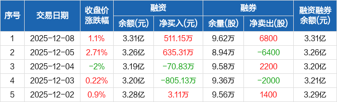 泰达股份:融资净买入511.15万元,融资余额3.31亿元(12-08)