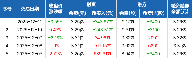 泰达股份:融资净偿还343.67万元,融资余额3.25亿元(12-11)