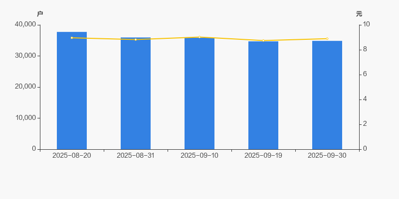 2025年8月20日至今,公司股东户数有所下降,区间跌幅为7.64%。2025年8月20日至2025年9月30日区间股价下降0.78%。