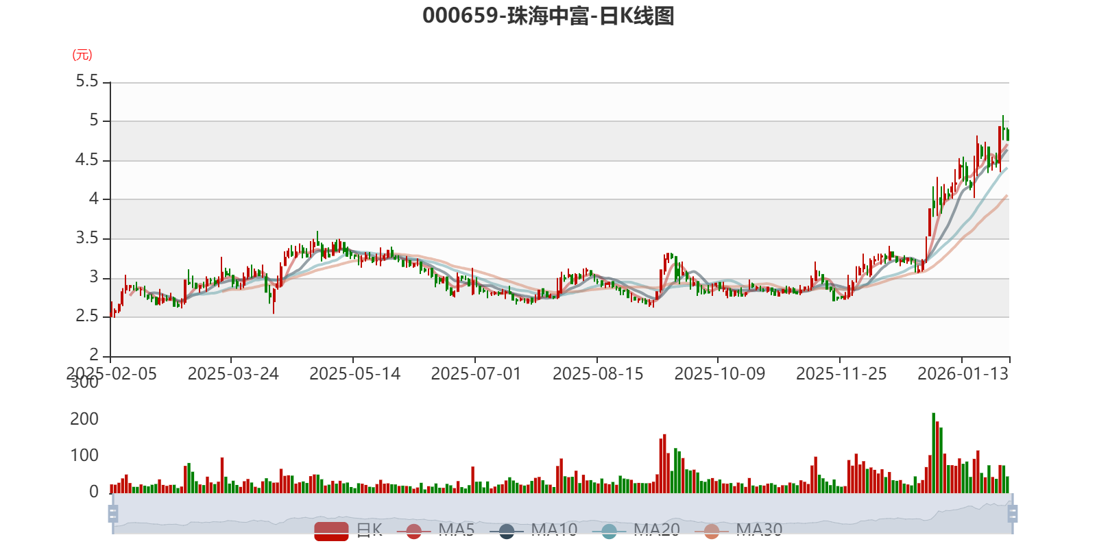 中证智能财讯珠海中富(000659)1月29日晚间披露2025年度业绩预告,预计2025年归母净利润亏损1亿元至1.35亿元,上年同期亏损1.23亿元;扣非净利润亏损1亿元至1.35亿元,上年同期亏损1.15亿元;基本每股收益-0.0778元/股至-0.105元/股。以最新收盘价计算,市净率(LF)约36倍,市销率(TTM)约6.14倍。