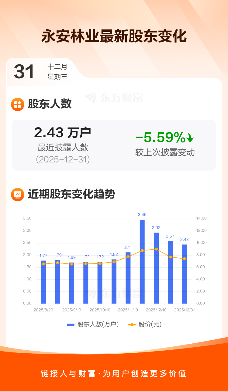 永安林业:截至12月31日最新股东户数2.43万户,较上期减少5.59%