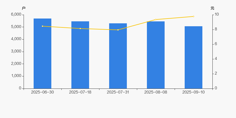 2025年6月30日至今,公司股东户数显著下降,区间跌幅为11.03%。2025年6月30日至2025年9月10日区间股价上涨15.62%。