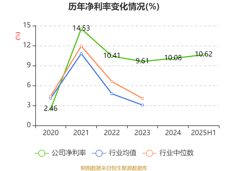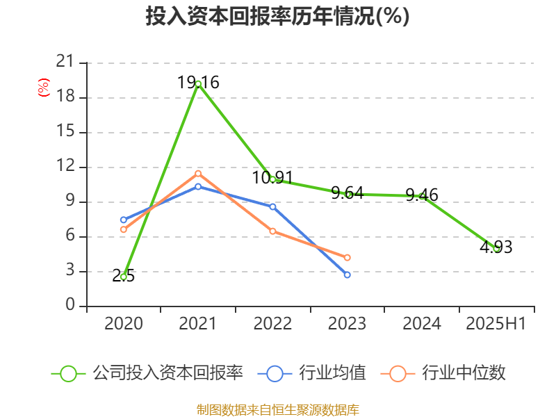 盈利能力方面, 2025年上半年公司加权平均净资产收益率为5.87%,同比上升0.35个百分点。公司2025年上半年投入资本回报率为4.93%,较上年同期下降0.08个百分点。