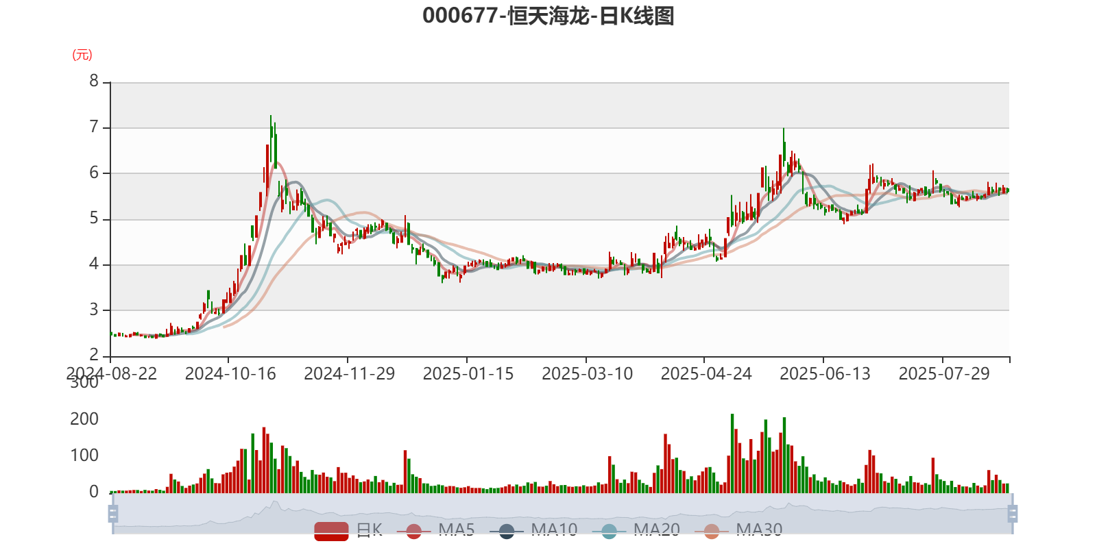 值得注意的是,中登公司数据显示,截至2025年8月15日,恒天海龙15.68%股份处于质押状态。半年报显示,第一大股东温州康南科技有限公司质押1.36亿股公司股份,占其全部持股的98.19%。
