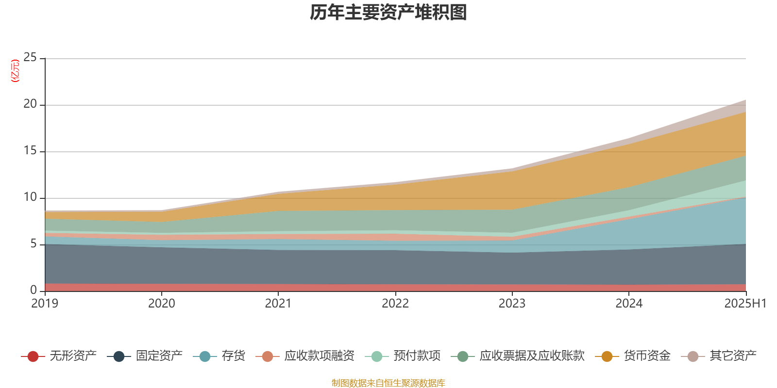 资产重大变化方面,截至2025年上半年,公司货币资金较上年末增加1.66%,占公司总资产比重下降5.3个百分点;存货较上年末增加53.85%,占公司总资产比重上升4.53个百分点;预付款项较上年末增加155.61%,占公司总资产比重上升4.33个百分点;应收票据及应收账款较上年末增加7.6%,占公司总资产比重下降2.12个百分点。