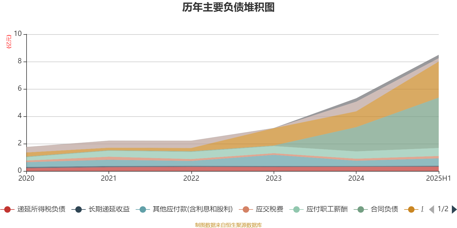 负债重大变化方面,截至2025年上半年,公司合同负债较上年末增加108.23%,占公司总资产比重上升7.16个百分点;应付票据及应付账款较上年末增加127.49%,占公司总资产比重上升5.77个百分点;短期借款较上年末减少65.26%,占公司总资产比重下降3.12个百分点;其他流动负债较上年末减少99.31%,占公司总资产比重下降1.38个百分点。