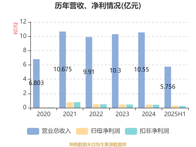 中证智能财讯恒天海龙(000677)8月22日披露2025年半年度报告。2025年上半年,公司实现营业总收入5.76亿元,同比增长5.18%;归母净利润3056.52万元,同比增长16.79%;扣非净利润2479.38万元,同比下降1.41%;经营活动产生的现金流量净额为4866.2万元,同比下降41.31%;报告期内,恒天海龙基本每股收益为0.0354元,加权平均净资产收益率为5.87%。