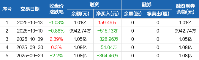 襄阳轴承:融资净买入159.49万元,融资余额1.01亿元(10-13)