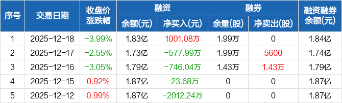 襄阳轴承:融资净买入1001.08万元,融资余额1.83亿元(12-18)