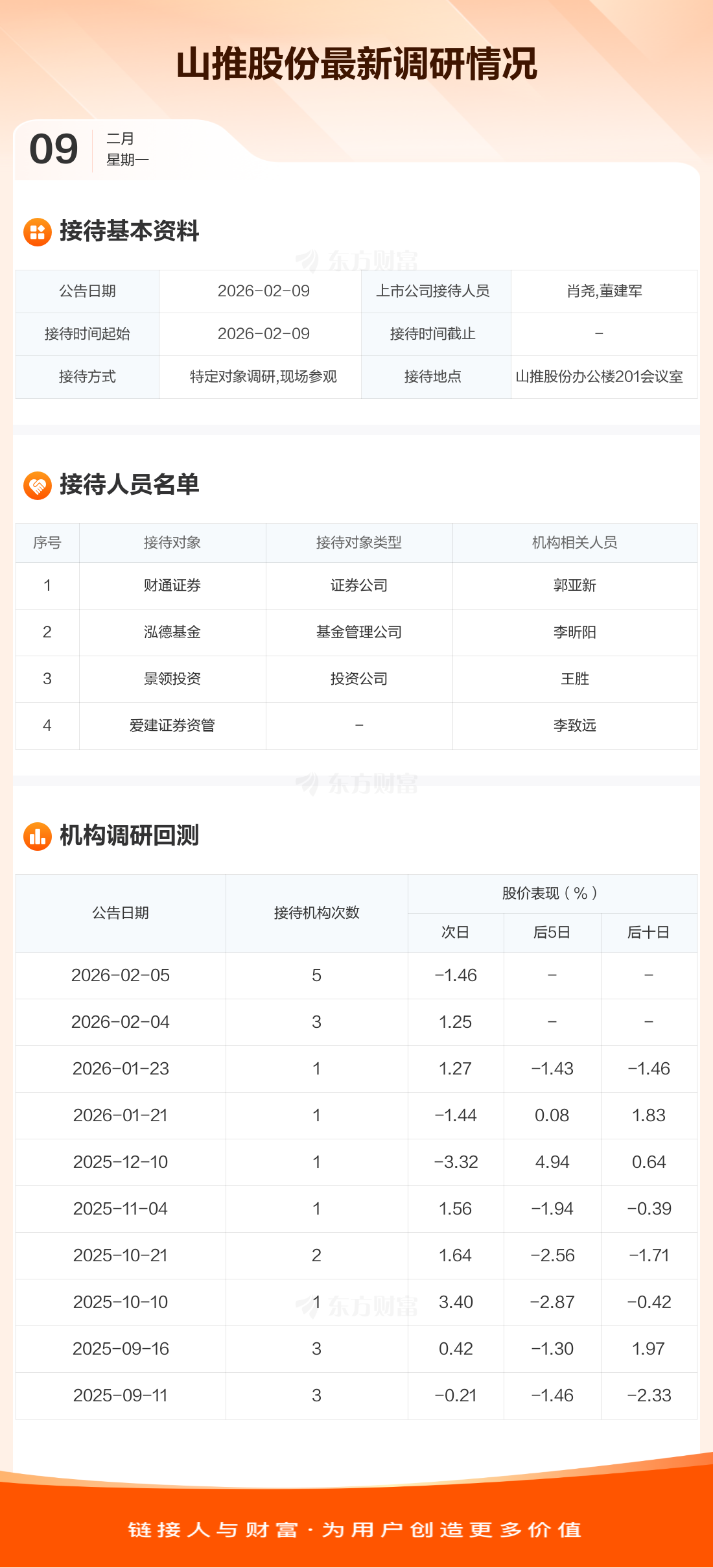 山推股份2月9日公告称,2月9日接待财通证券等4家机构调研。接待人员包括肖尧,董建军。