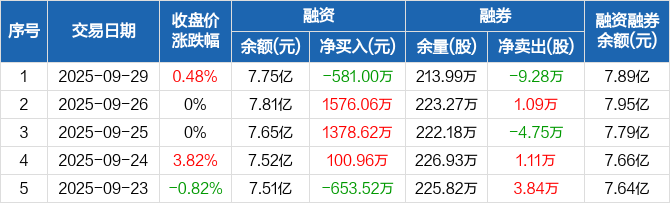 博源化工:融资净偿还581万元,融资余额7.75亿元(09-29)
