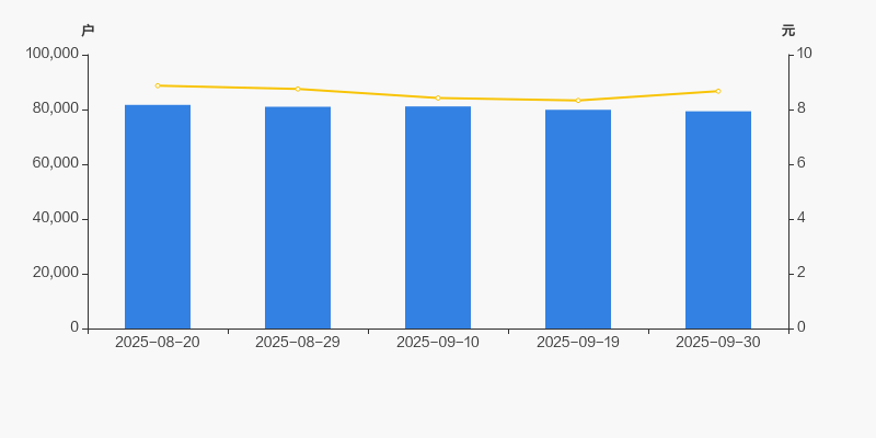 2025年8月20日至今,公司股东户数有所下降,区间跌幅为2.86%。2025年8月20日至2025年9月30日区间股价下降2.25%。