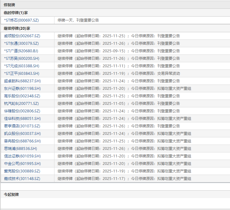 上证报中国证券网讯 11月27日,1家公司临停:*ST炼石。