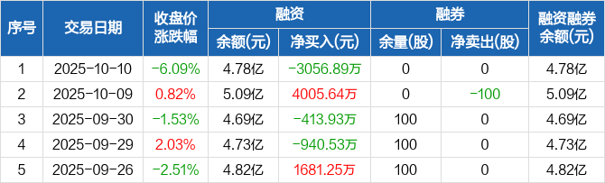 模塑科技:融资净偿还3056.89万元,融资余额4.78亿元(10-10)