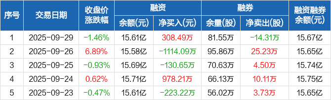 恒逸石化:融资净买入308.49万元,融资余额15.61亿元(09-29)